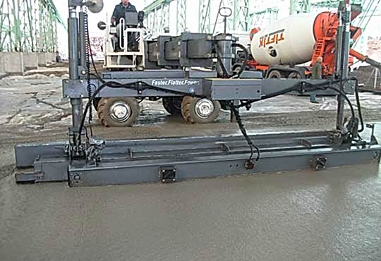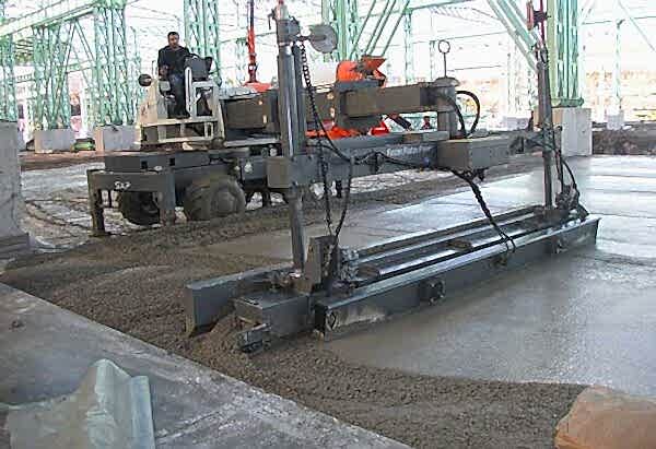 Beton yerden verilen yerleşim alanına 5 metre genişlikli şeritli beton dökülerek lazer Screed aracı, teleskopik bum beton altında ileri sürülecek şekilde hareket etmektedir. Çalışma bloğu yeni konulmuş betonun üzerinde sadece bir defa geçerek onun ayarlanmasını ve sıklaştırılmasını sağlamaktadır.